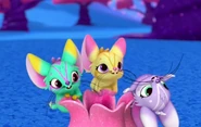 Fuzzle Whuzzles are mice-like creatures that appear in the episode Par-Tea Time Description[]Fuzzle Whuzzles are playful creatures who enjoy causing mischief to whoever come across them, such Leah and her Genies when Searching for the Tea Flower Looks[]The Fuzzle Whuzzles each come in three different colours, one yellow, green and purple. Appearances[]Trivia[]